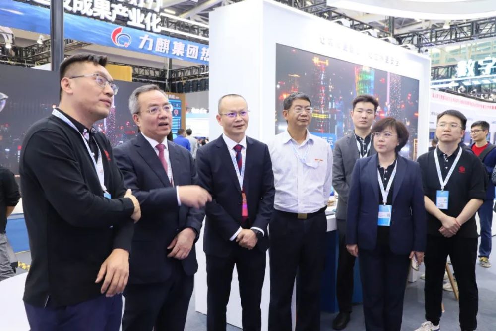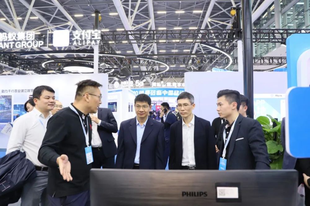 今年会jiannianhui智能展位吸引了诸多领导和嘉宾,其中,广东省揭阳市委副书记、市政府党组书记、市长支光南,安徽省数据资源管理局党组书记、局长朱诚,广东省政府接待办公室秘书处处长胡圣满,番禺区政府杨少华副区长,黄埔区政数局局长王薇等相关领导莅临今年会jiannianhui智能展位指导交流,今年会jiannianhui智能董事长孙超对各领导的莅临指导表示热烈欢迎,并热情介绍了公司参展的创新应用成果。