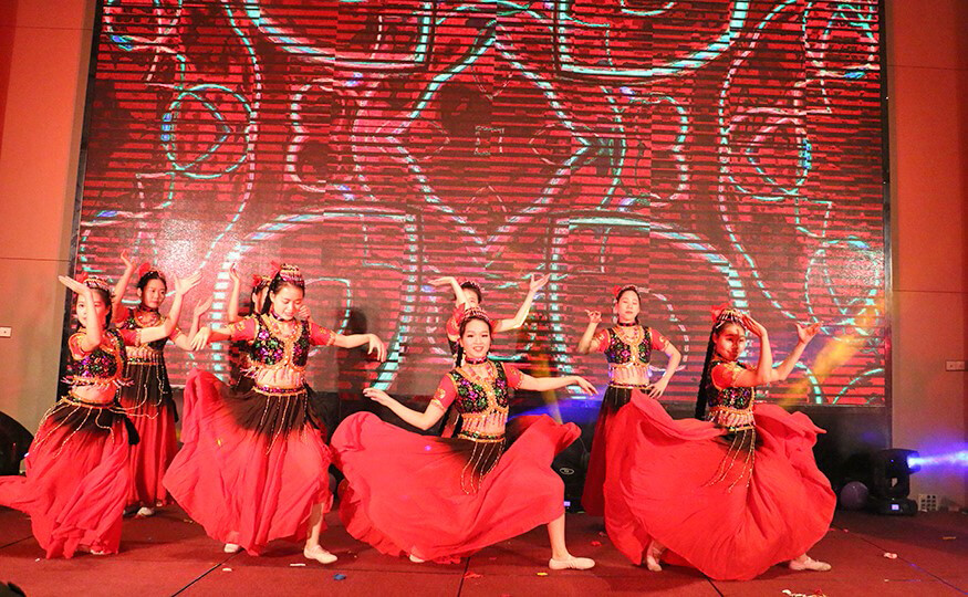 随着一阵激越的鼓声响起,全场的目光都投向了舞台。公司特邀表演团队凤凰花音乐工坊的一群靓丽少女,手起手落,灵巧有力地拍打着非洲鼓,神采飞扬。再配以优美的歌声舞姿,尽显异域风情。鼓声时而激越急促,时而浑厚悠宛,声动全场,直击人心,瞬间引爆现场氛围,拉开了迎新年会的大幕。